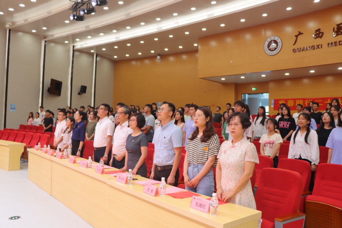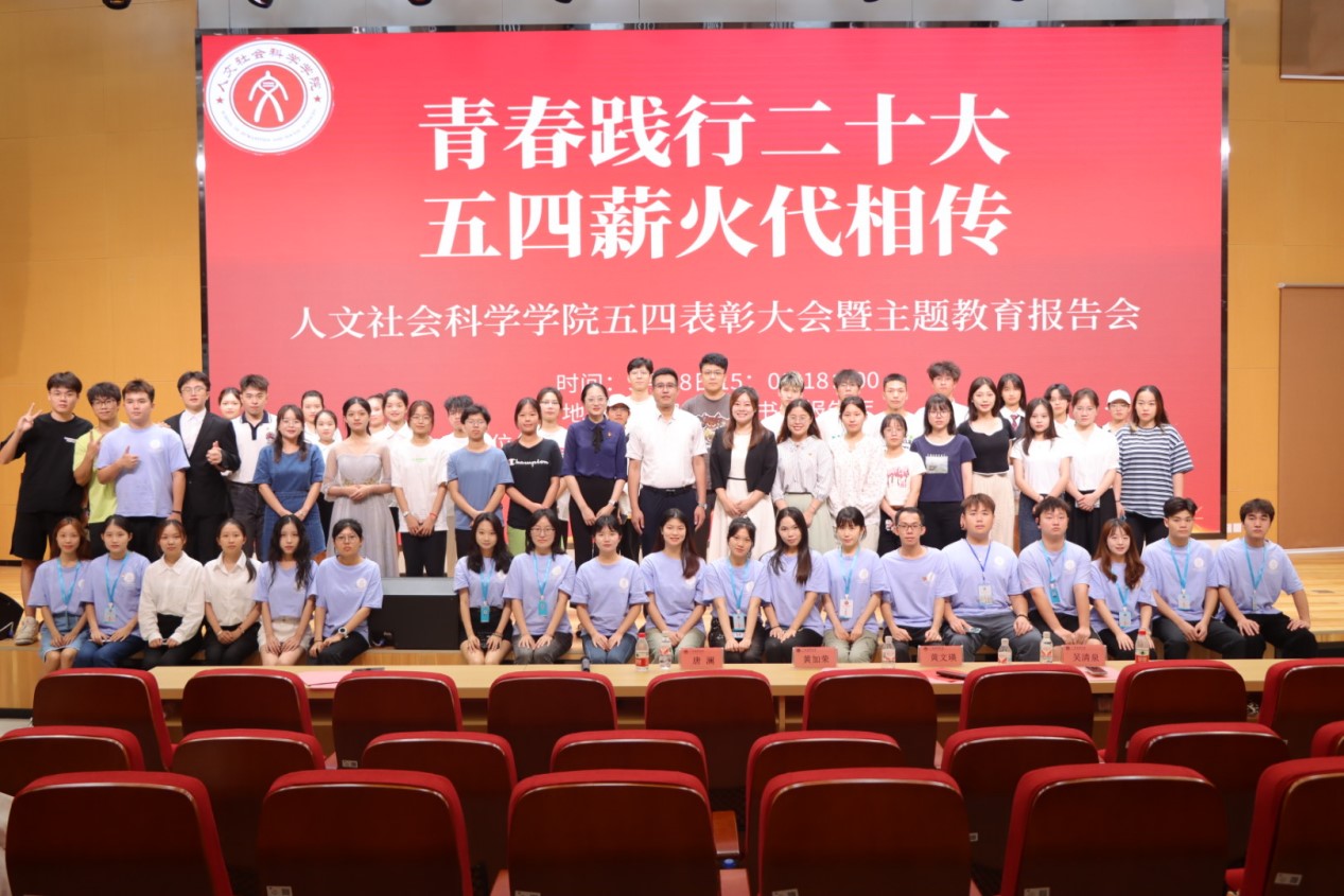 为扎实推进学习贯彻习近平新时代中国特色社会主义思想主题教育,并表彰一年来学生群体中涌现出的先进集体和个人,进一步激励学子踔厉奋发、担当有为,福彩 于5月28日下午在武鸣校区图书馆报告厅举行了“青春践行二十大,五四薪火代相传”五四表彰大会暨主题教育报告会。广西志愿者指导中心黄加荣、学院王前强院长、郑茸副书记,各部门、学院的教师代表及学生三百余名参加活动。