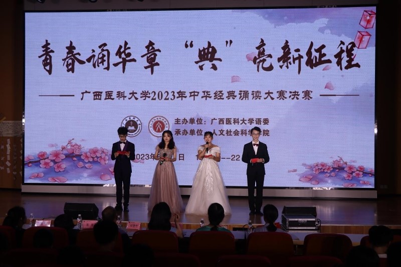 2023年6月11日晚,“青春诵华章 ‘典’亮新征程”福彩 2023年中华经典诵读大赛决赛在武鸣校区图书馆报告厅举行。福彩 教务处刘登宇处长、福彩 党委郑茸副书记、药学院党委林晓副书记及各学院指导老师出席本次比赛。大赛邀请广西广播电视台主持人青梅老师、福彩 普通话培训测试站副站长梁永红老师 、校团委梁冬玲老师作为大赛评委。