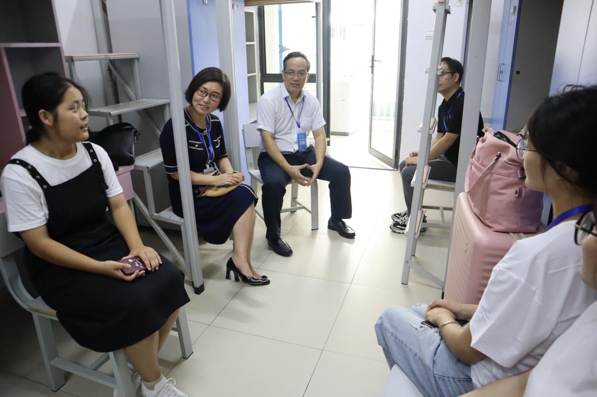 学院领导与新生辅导员以及班主任一同前往了新生宿舍,与2023级已到校的新生亲切交流。认真询问同学们对学校环境的适应情况,同时对同学们提出了殷切期望,希望同学们能尽快转变角色,熟悉校园环境,以积极、健康的面貌融入新学期的学习与生活中。