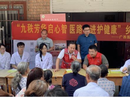 党委书记唐忠、院长许海东一行6人赴马山县里当乡开展“九秩芳华启心智,医路奋进护健康”乡村振兴服务活动,同行的还有32名学生。